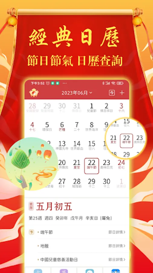②The interface is simple, not redundant, highlights the Chinese style, and makes a high-quality and accurate Chinese calendar perpetual calendar!