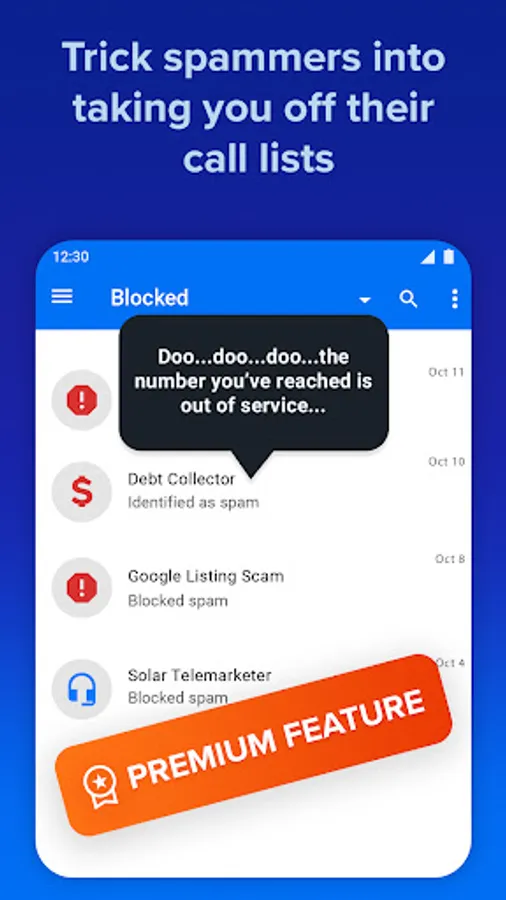 * Our voicemail-based fingerprinting enables our call blocker to detect and block a spam call or robocall faster than others.