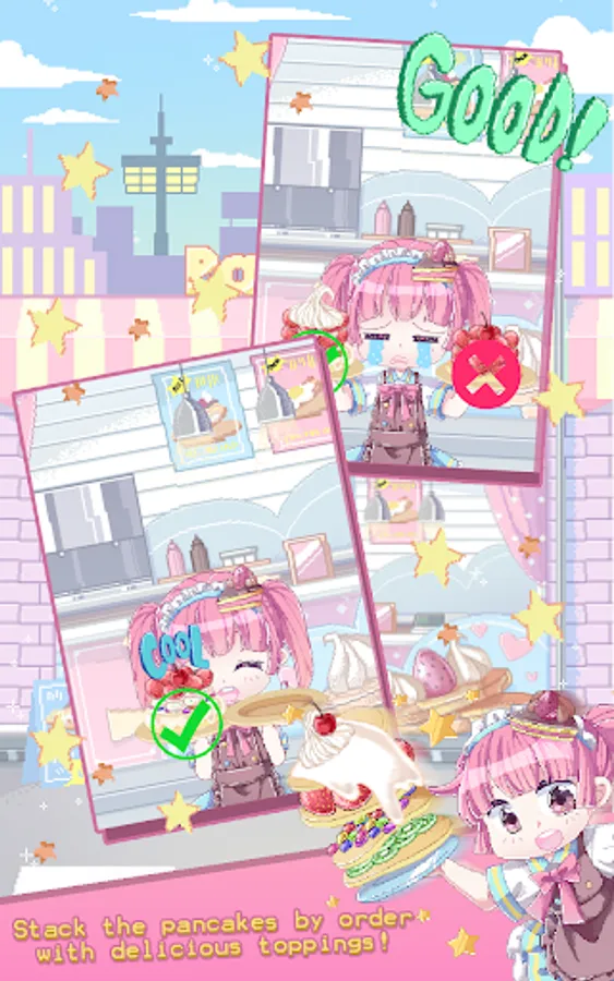 Delicious Dreamy Pancake is an arcade game that is very fun to play because you have to achieve the highest score by stacking delicious pancakes and toppings.