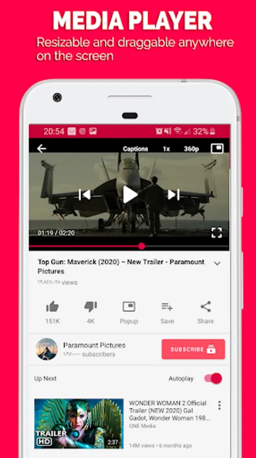 - Better listening experience using floating youtube player you can drag it anywere on screen