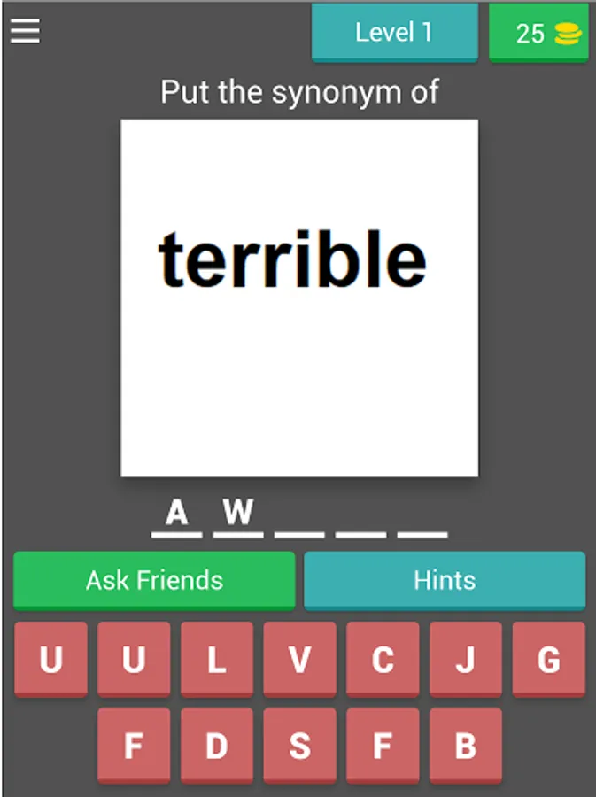 • In every level you will found a word that you should find it's Synonyms to rich the ather level