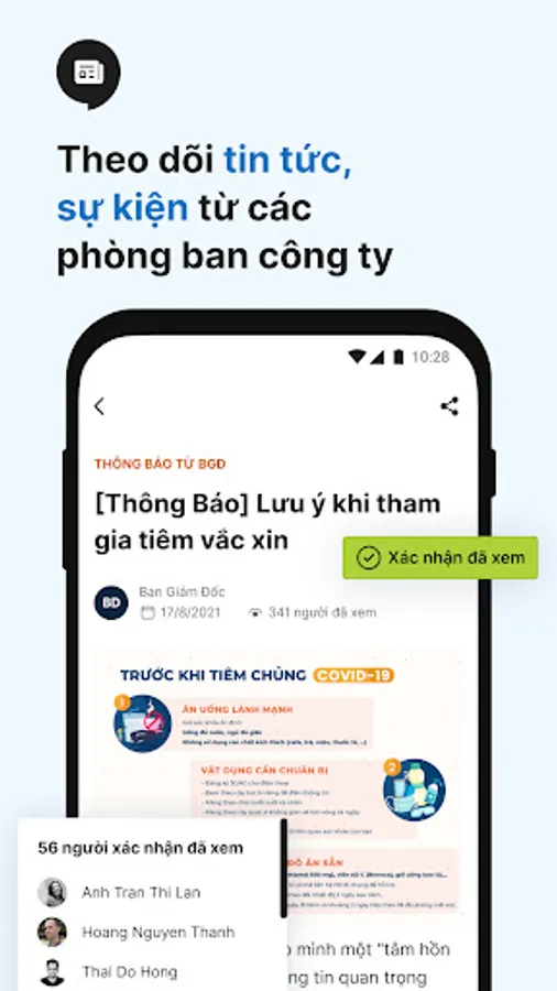 - Interact with memberssocial with reactions, comments, share, attach files or tag any employee into post information.