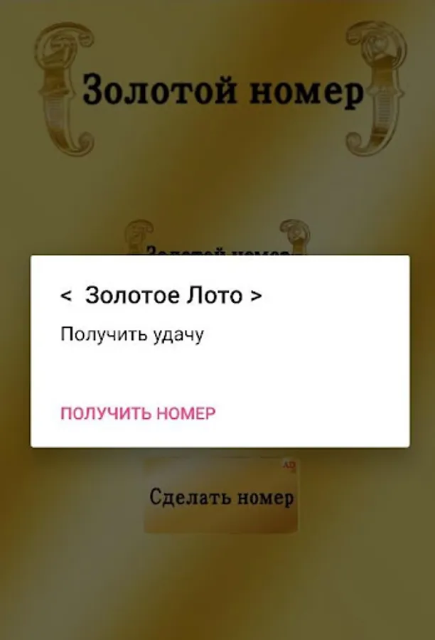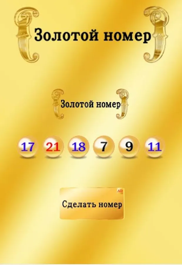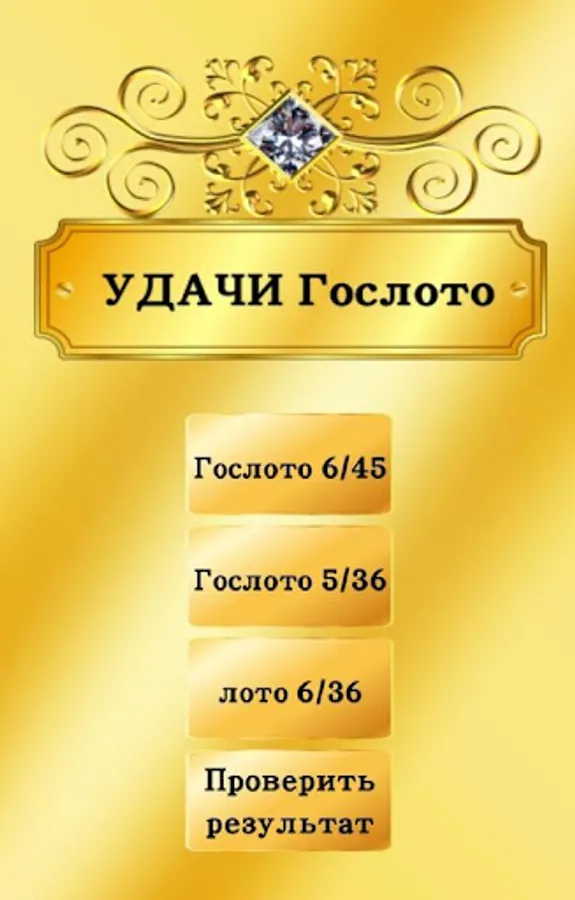 Удачи в приложении GosLotto, чтобы получить хороший номер, нажав золотую кнопку.
