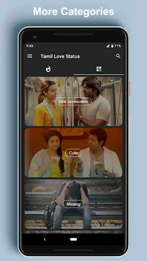Tamil Love Status application has designed and developed exclusively to provide love videos. We assure you that, we provide only love related videos and quality contents.