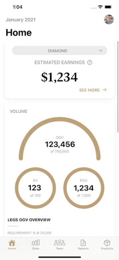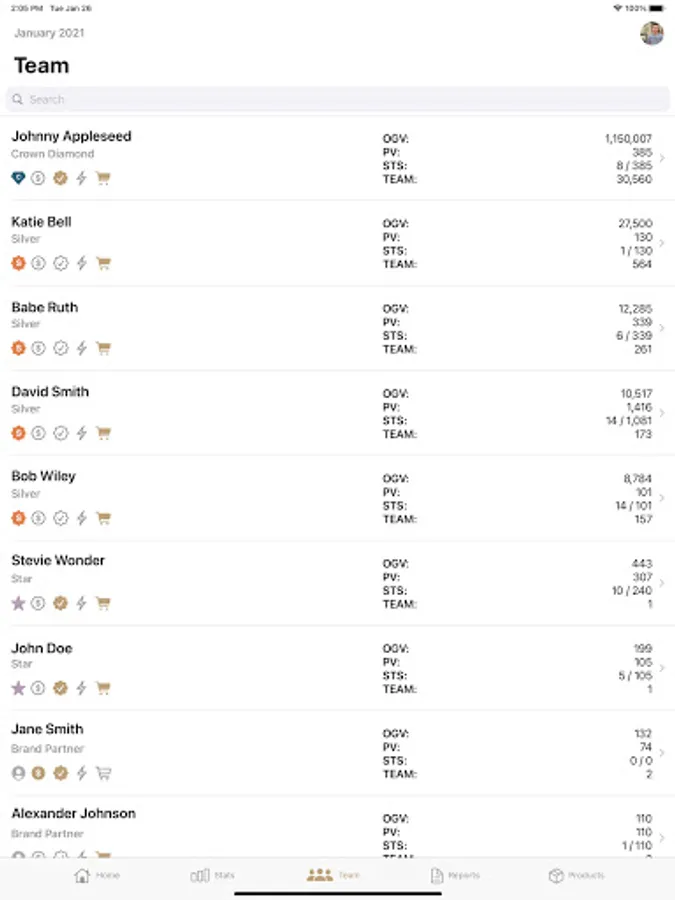• Drill down to Individual Team Member views to get quick stats on their individual volumes and organizational numbers