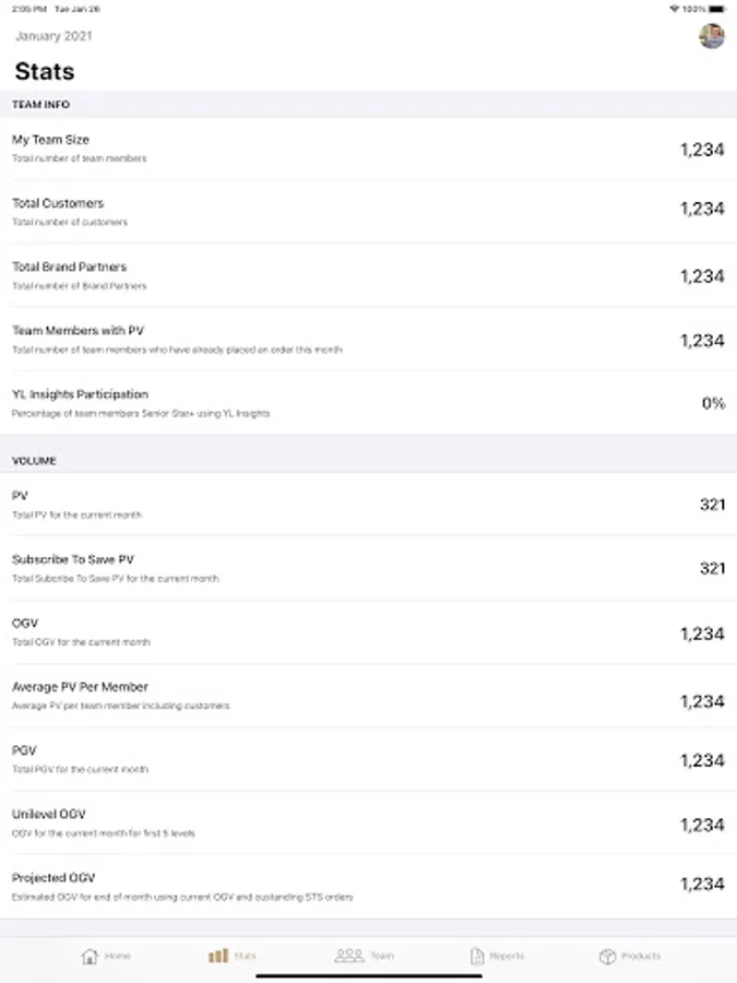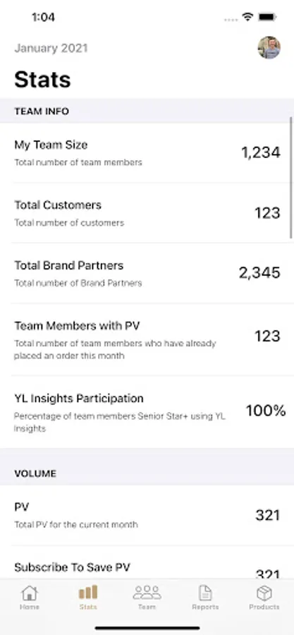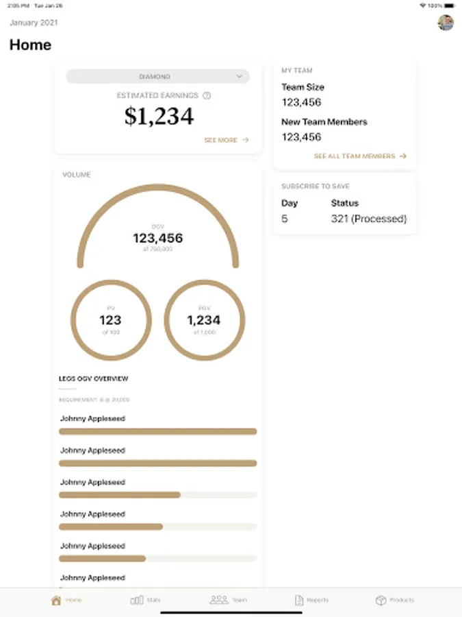 • See a statistical snapshot of your Team including volumes, organizational growth, Autoship (Subscribe to Save) Status Enrollments and more