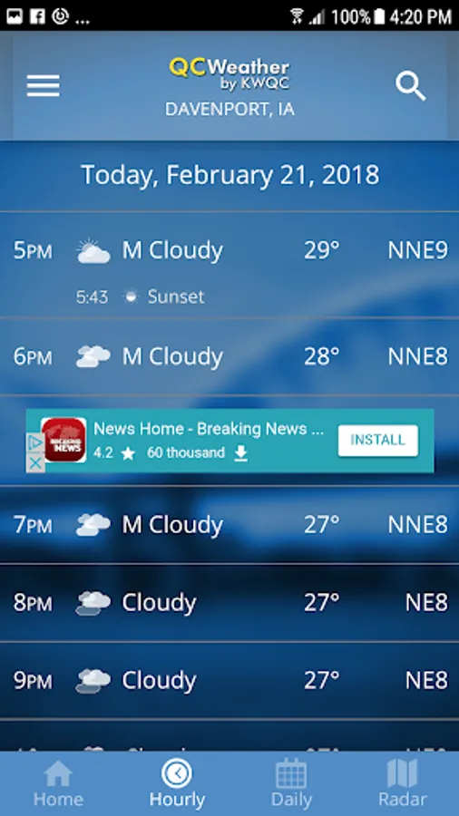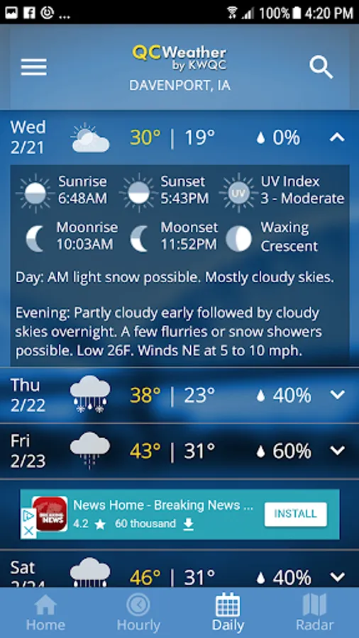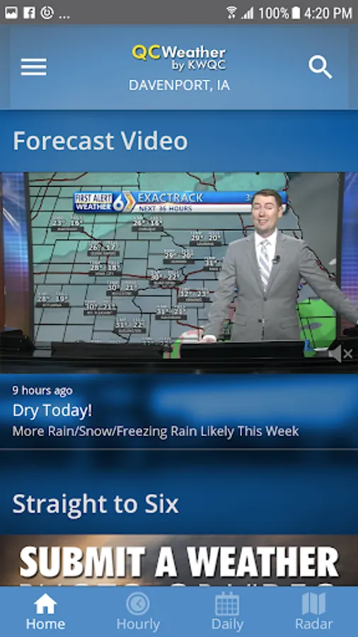 The free QCWeather mobile app delivers up-to-the-minute weather information wherever you are. Serving Davenport, Bettendorf, Rock Island, Moline, Burlington, Clinton, Muscatine, Galesburg, Sterling, Rock Falls or anywhere in the Quad City area, the QC Weather App is for you! Download QCWeather to stay on top of changing weather conditions and put the KWQC-TV6 First Alert weather team in the palm of your hand.