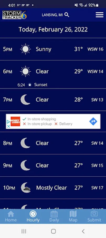 Never let the weather catch you by surprise again. The trusted weather experts of StormTracker 6 Team deliver Lansing and Mid-Michigan's most accurate hour-by-hour forecast for the next day and for the week ahead. Unlike other weather apps, you'll get a local forecast that is customized for you.