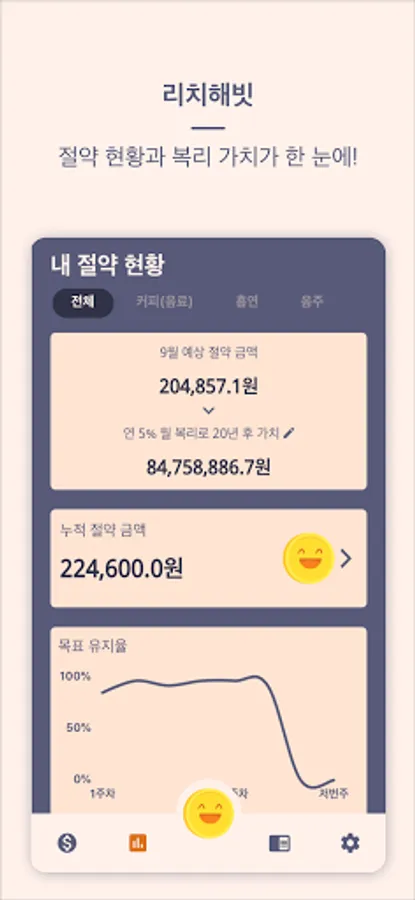 - 누적 절약금액과 해당 금액의 복리가 적용된 n 년 후 가치를 한눈에 볼 수 있습니다.