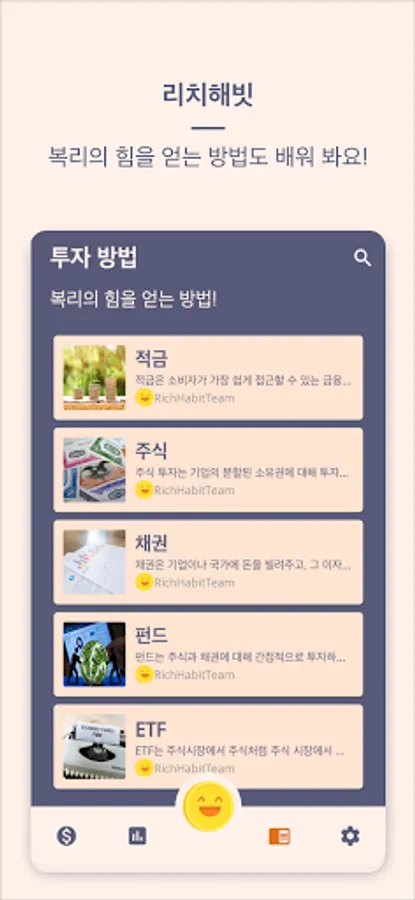 - 그렇게 모은 돈을 투자하는 방법도 이 앱에서 확인 할 수 있습니다.