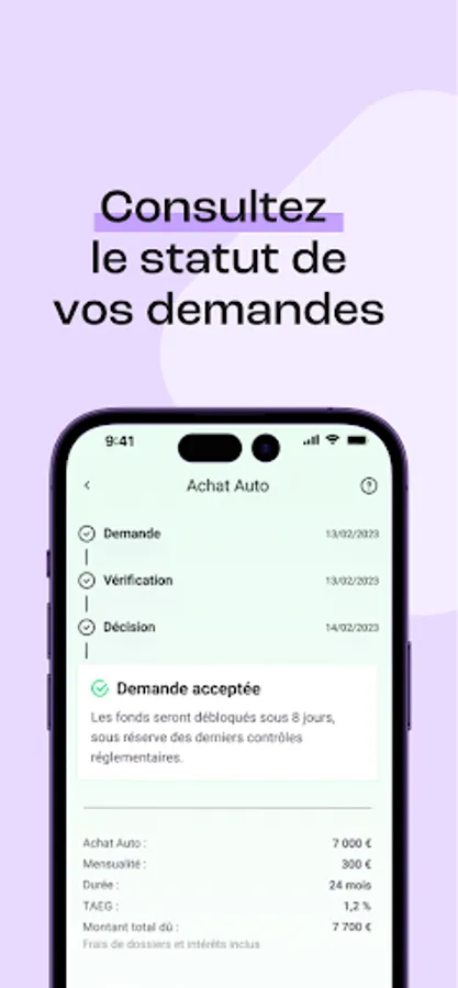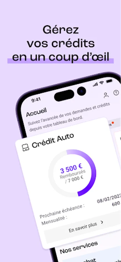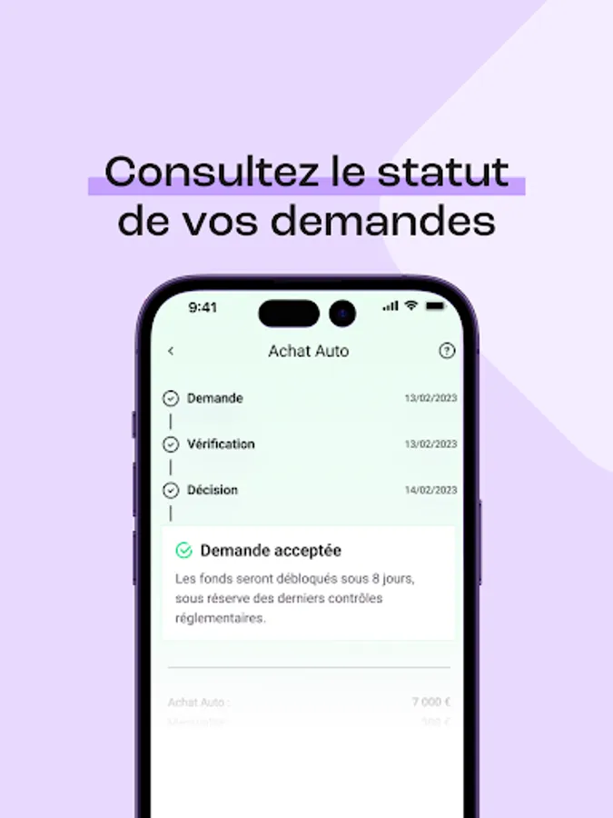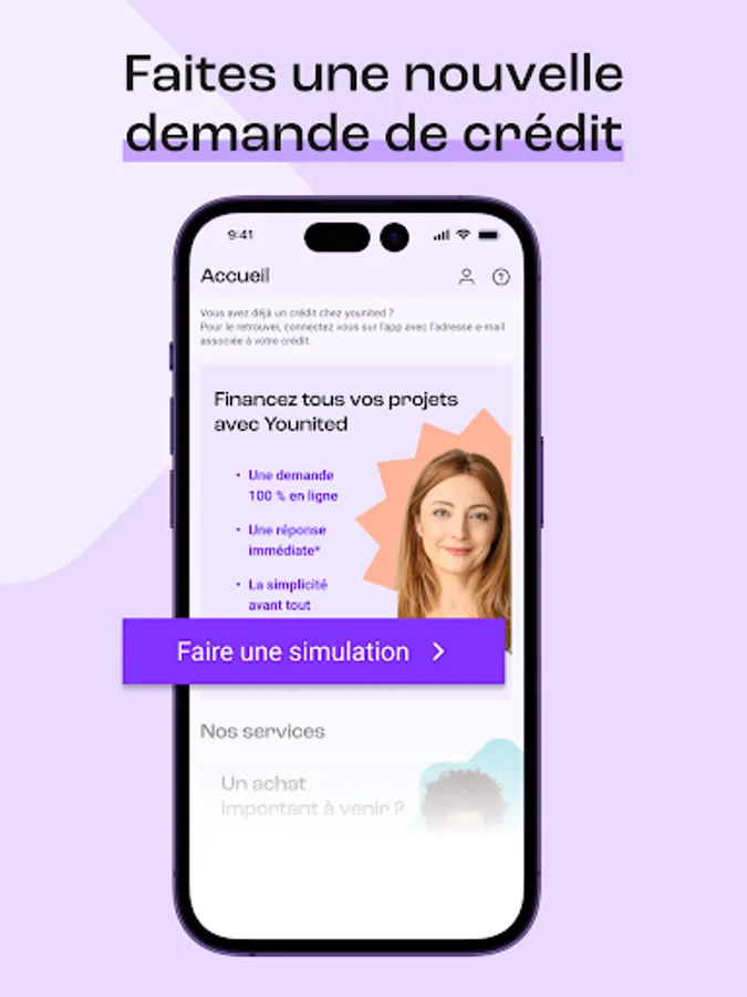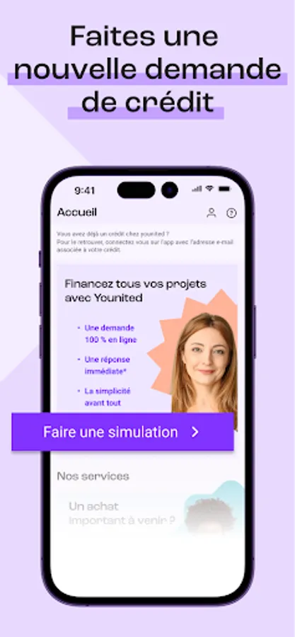 Younited offers you access to a secure and dedicated space from your smartphone in order to consult the progress of your requests at any time, manage your credits independently and access your customer account.