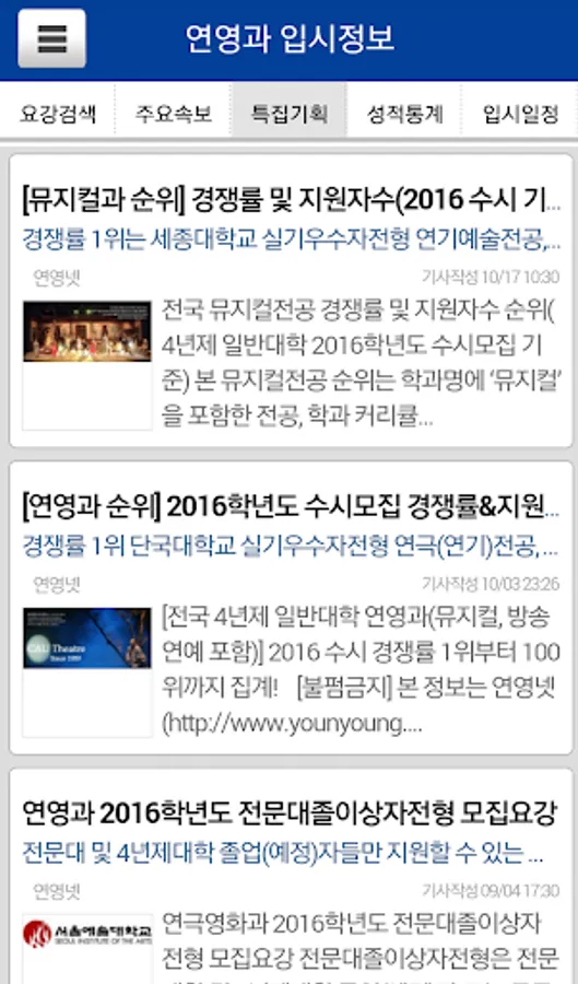 Theatre Film, TV yeonyegwa, various musical and acting, directing major entrance examination syllabus included