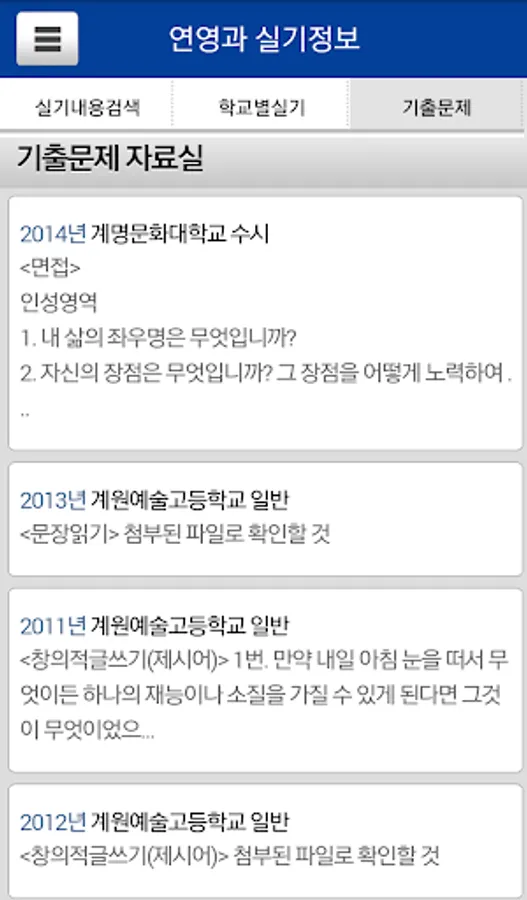 Daehakbyeol practical examination of questions and content that have previously appeared, as well as practical preparation tips, notice, including cases of Admissions Information