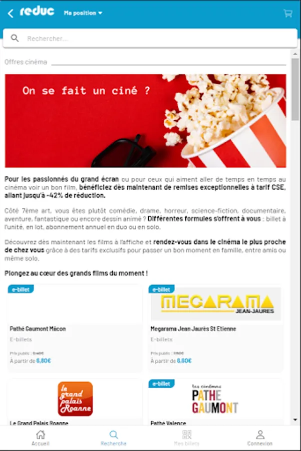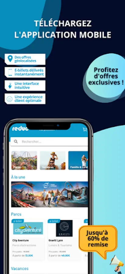 ReducCE is an e-ticketing platform for leisure, parks, gift cards, cinema, entertainment, sport, culture, travel, well-being, skiing, bringing together all of the existing offers for CSEs. It offers discounts of up to 75%, geolocated and instantly accessible in your smartphone!