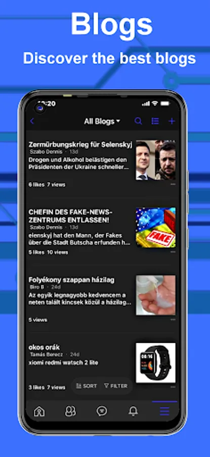 • Tell something about yourself based on your profile and your posts, view content, react to posts