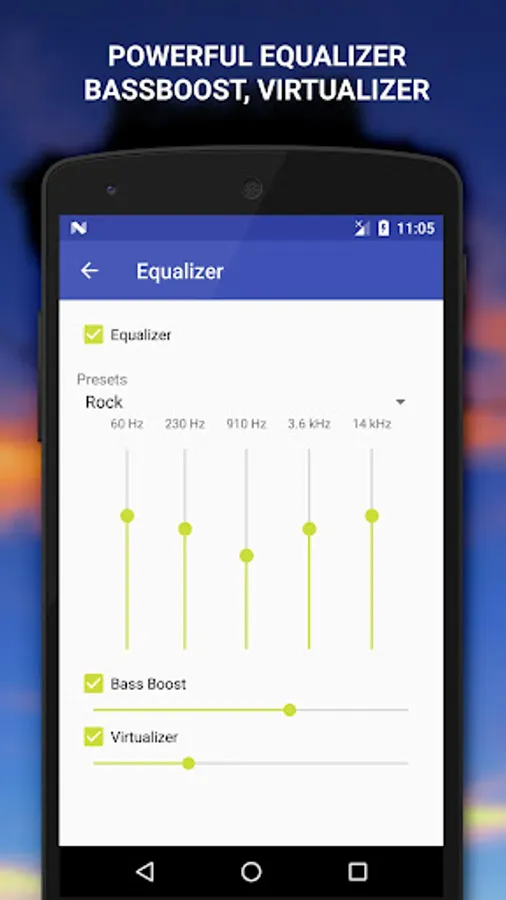 + Powerful Equalizer, Bass Boost and Virtualizer