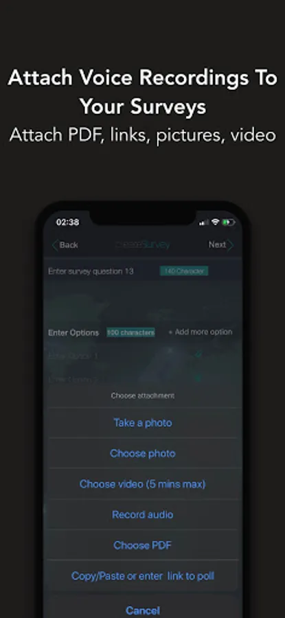 Attach up to 20 images, audio recordings, videos, PDF documents and websites to each poll or survey option or for each candidates campaign material