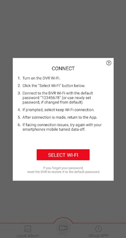 The DVR Connect Play App allows you to connect to your DVR wirelessly and to manage its settings, download recorded media and view live video feed.