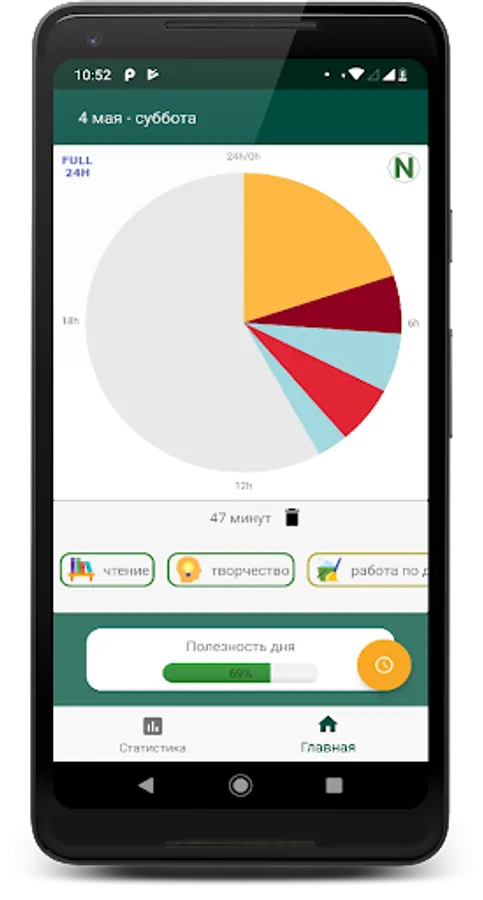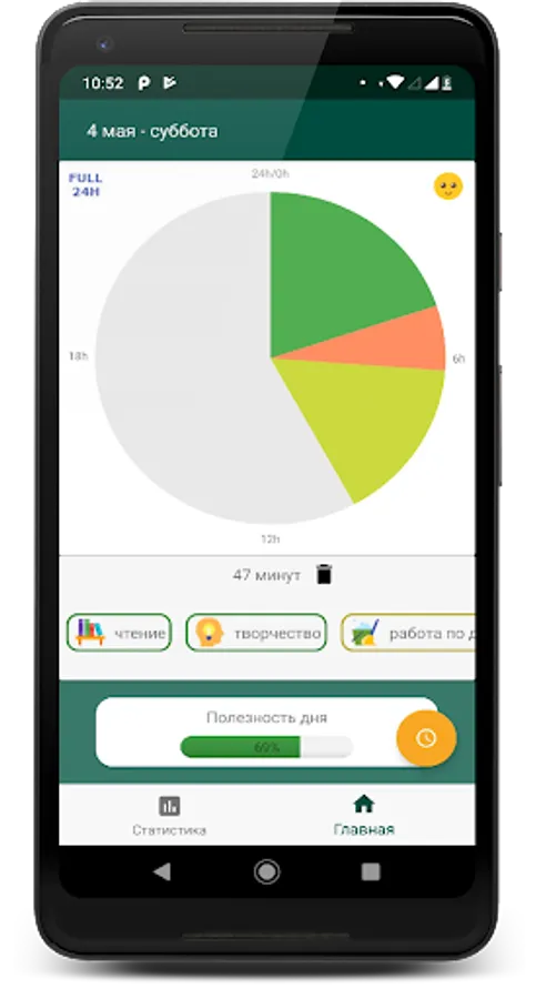If you care about your productivity, annoying when time is spent on useless things - this app is for you! It is made in a minimalist style, does not distract anything - you can mark the time, get information about productivity and statistics.