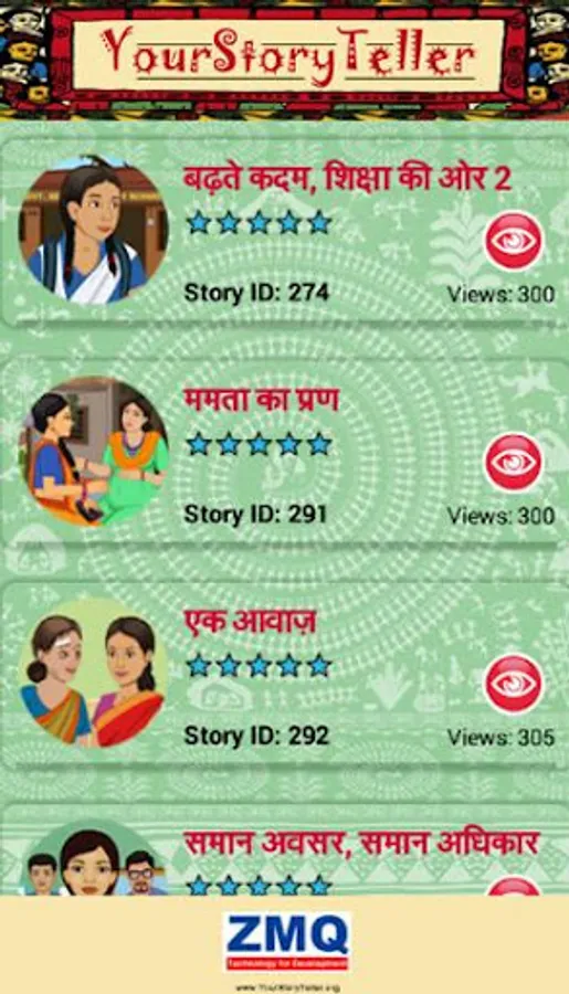 Your Story Teller is an ever growing collection of real stories of grass-root communities of India, South Asia, and Africa. A new story is released on the app every week. The stories are episodes like audio comics - audio books with graphics, audio support in local languages supported by relevant translations. The Story Teller has new awesome stories based on real issues the communities face, living under extreme conditions. The stories are about people combating poverty, hunger, maternal and child issues, human rights violations, issues of poor farmers, people living in distress, trafficking, issues related to women equality and rights and above all bringing voices of people from the ground.