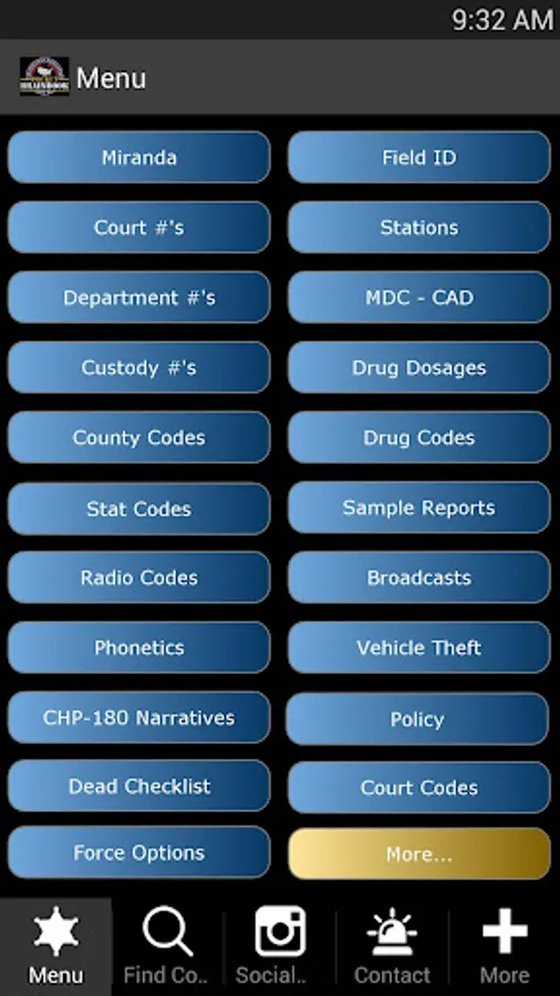 Designed for LASD. This app was designed based on our popular pocket book version currently sold in CA police stores. This app was designed for LASD Deputies. You can search Penal, Traffic, ABC, Health and Safety Laws by keyword or browse Codes. It has LASD radio codes, Stat codes, broadcasts, Miranda, narcotic codes, symptomology CHP-180 Narratives, sample reports, and so much more. It also has LASD department numbers, and much needed CA state information. This app is constantly updated throughout the year as new information comes out.