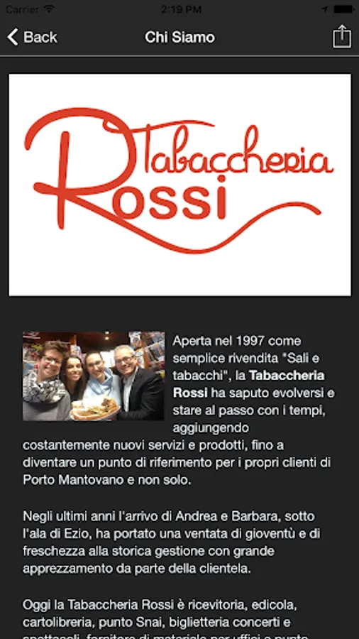 The Tobacco Rossi bookies, newsstand, cartolibreria, point SNAI, Ticket concerts and shows, supplier of material for offices and point printing business cards, flyers, stamps, e-commerce and is able to respond to the diverse needs of its customers always with smile, patience and kindness, characteristics that have always distinguished, both to customers both on the tobacco market.