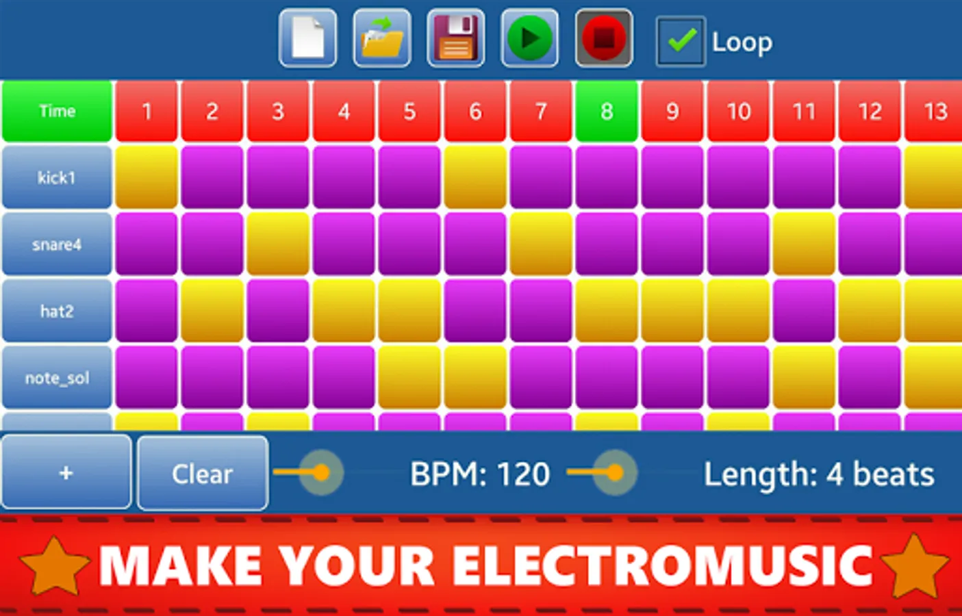 Numerous customization options: you can vary the speed to make your creation faster or slower, you can also adjust the number of cycles of 4 units that your recording has to make it more complete or simpler. Thanks to this the rhythm of your melody is adjustable and you can create it to your measure. From simple rhythms that can be used as a base to complex melodies to record your best songs, as if you were a DJ.
