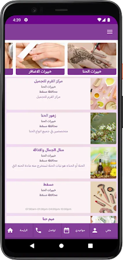 A special application for booking appointments in beauty centers available in the application according to the services provided by each center