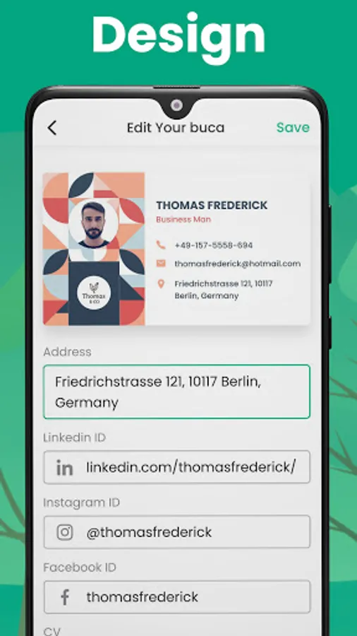 Are you looking for a customized business card to help you connect it with other professionals? Our online visiting card generator and card builder software is intended to assist you in creating personalized business cards so that you can get yourself known in the business world. With the help of a range of professional business card-themed, digital card templates and easy customization options, this app enables you to create your unique professional identity. What's even more exciting is that you can share your customized buca with other buca users, make new connections, expand your contacts, and communicate with these individuals via message, phone calls, and video calls!