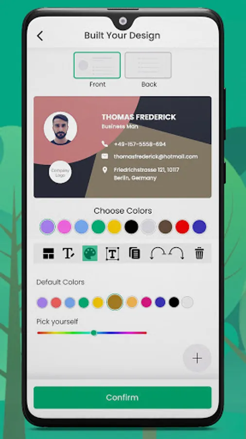 • Use pre-saved templates to create your business card or create a custom visiting card design using various themes