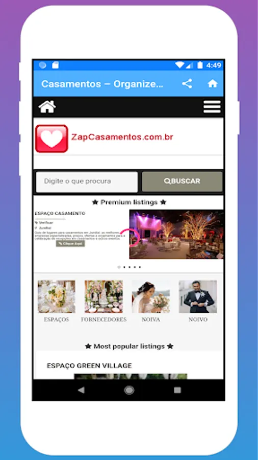 ZapCasamentos.com.br is a guide specialized in weddings and offers everything you need for your big day, your wedding!
