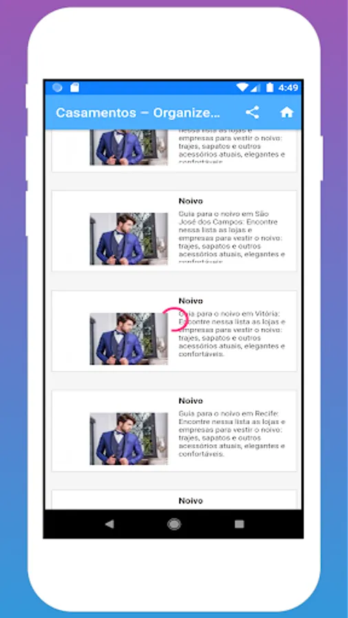 Business Guide: Find the best suppliers and professionals in the industry (spaces, buffets, decor, DJ, dresses, and more). Consult opinions, ask for free quotes, visit their website and much more!