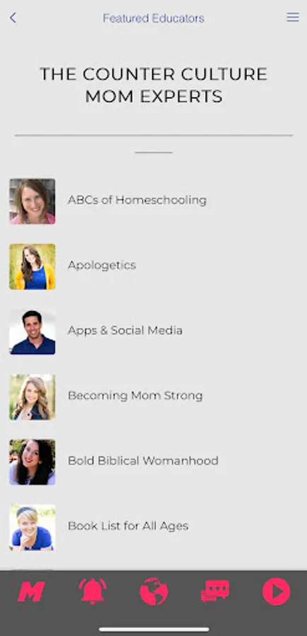 - Connect with us on our Counter Culture Mom Facebook page built within the app