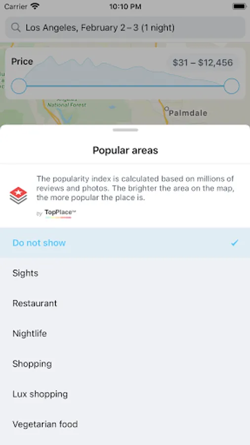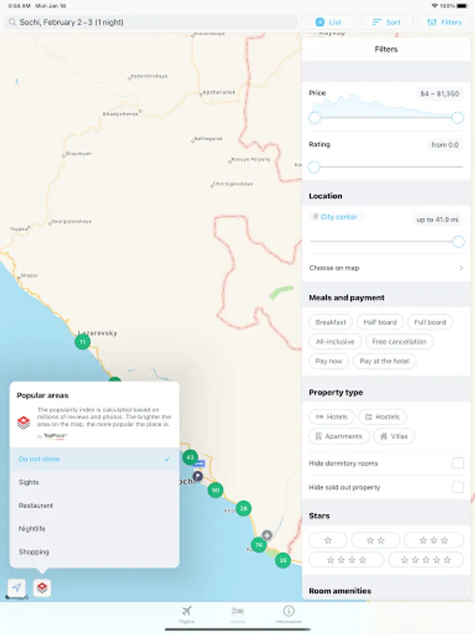 - convenient search for apartments and hotels in the selected area or near you on an interactive map.