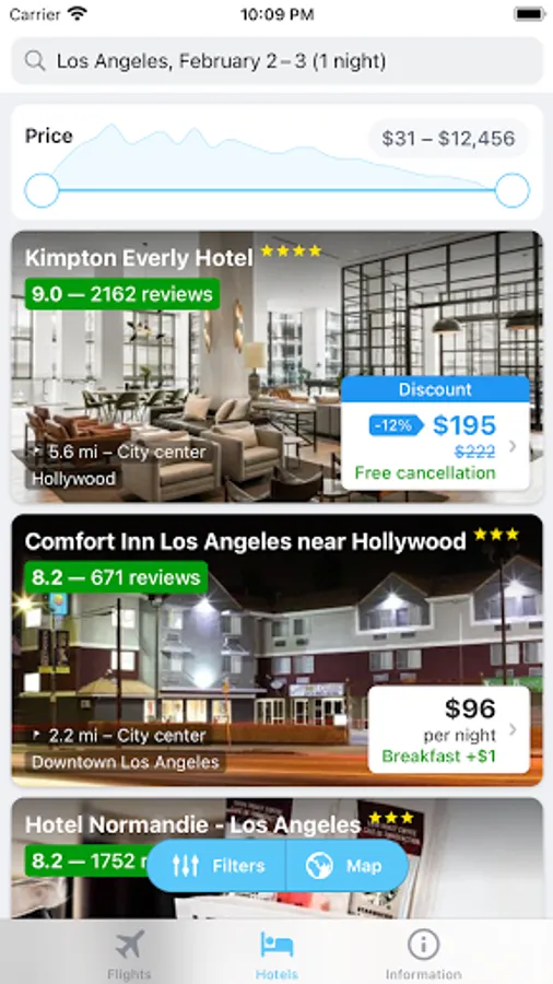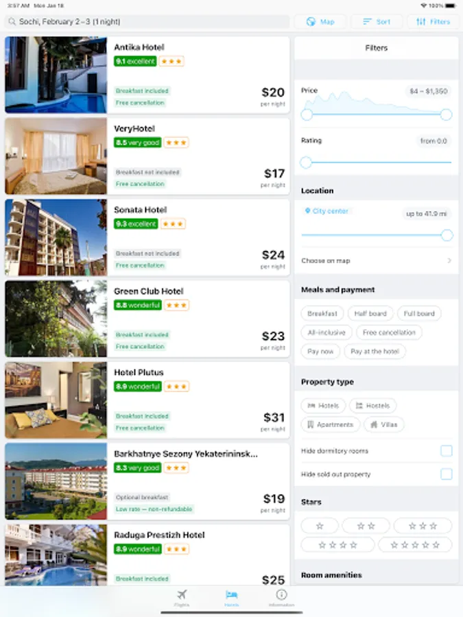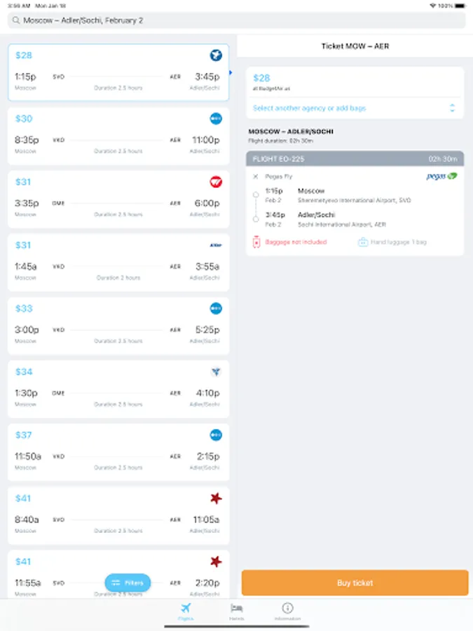 - a wide range of filters and sorting options will allow you to minimize the time spent searching for a suitable flight or hotel;