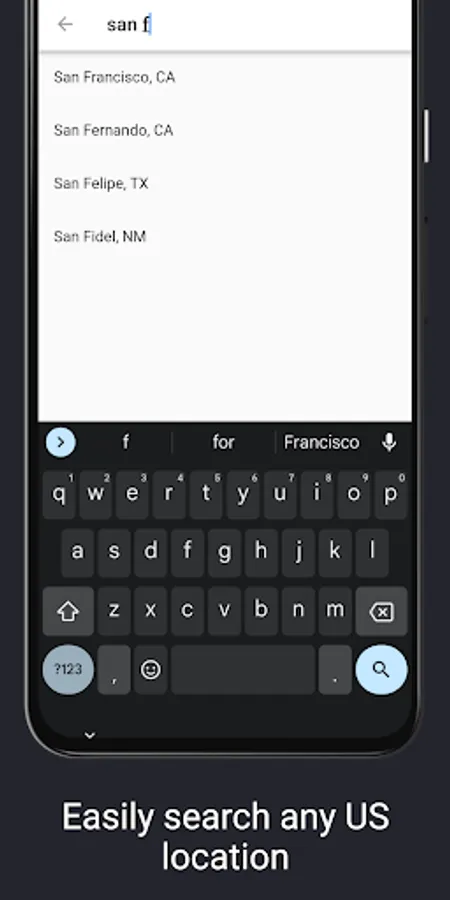 - As soon as you open the app your location will automatically be tracked down to your zip code or city, state.