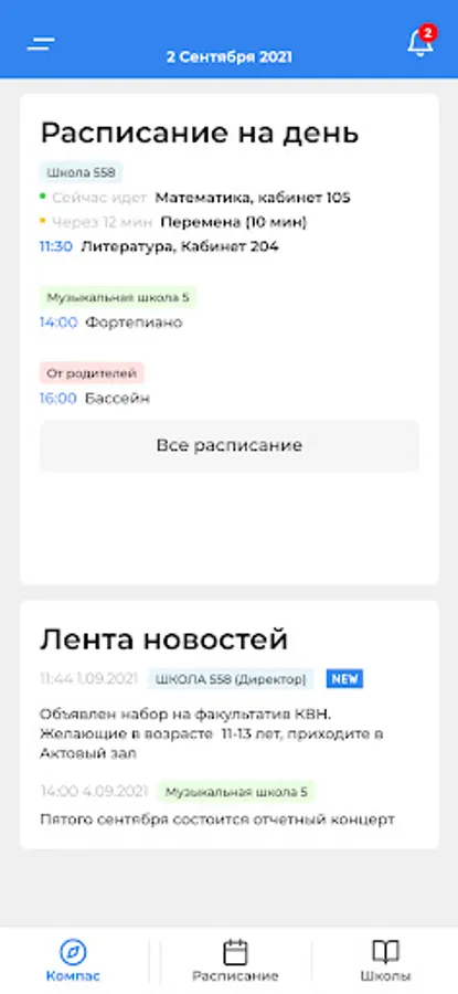 The administration of the school "Compass" will help to quickly manage the study schedule and evaluate the workload of teachers, and teachers will reduce the time for communication with parents and students, and will also allow you to create your own individual schedule.