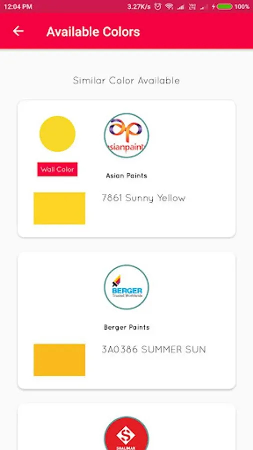 App automatically detects the matching color shades and products from leading brands like Asian Paints , Berger Paints and Shalimar Paints . Its Free and without ads.