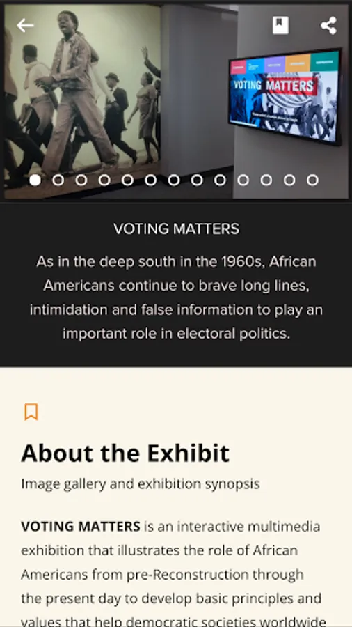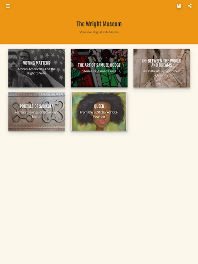 The Wright Museum Gallery Guide is an interactive mobile app accessible on phones and tablets allowing users to browse current and past exhibitions as well as artifacts from the museum's extensive digital collections and archive. As you are planning your visit to The Wright Museum, first take this digital tour of what is happening in our galleries.