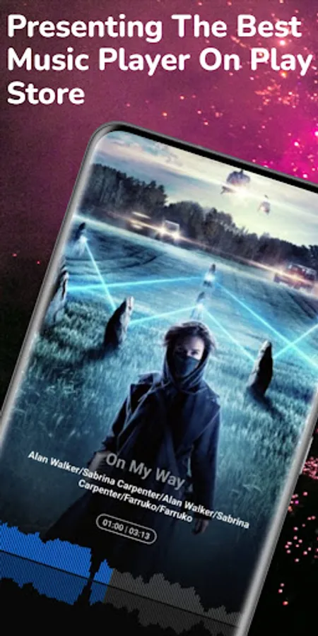 Powerful equalizer, Quick search all music and audio files, Easy to support all music & audio file formats, Custom background skin.