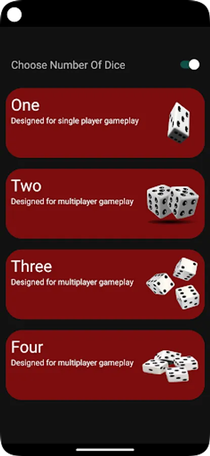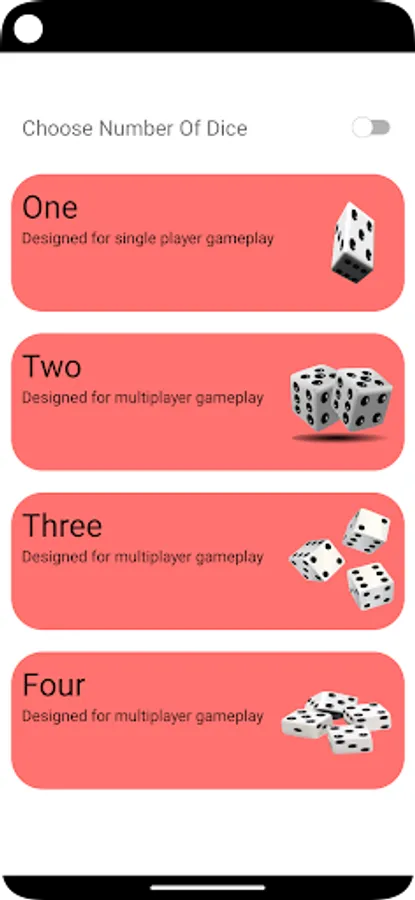 A simple dice roll app in mobile devices , which can be used incase you have lost dice or do not have dice. It is typically used for games that require the random selection of a number, such as board games or role-playing games. The app has a user-friendly interface that allows users to select the number of dice they want to roll and displays the result on the screen.