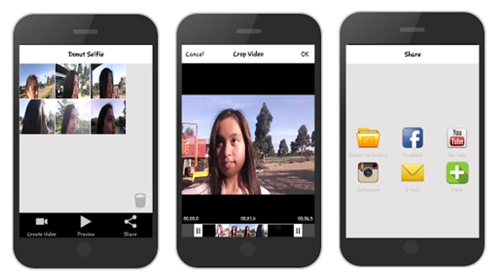 This app has a feature to auto record your video selfie and merge all videos in an instant. No need to use a 3rd party software to edit or merge your video. Taking a Donut Selfie is now faster when you use this app.