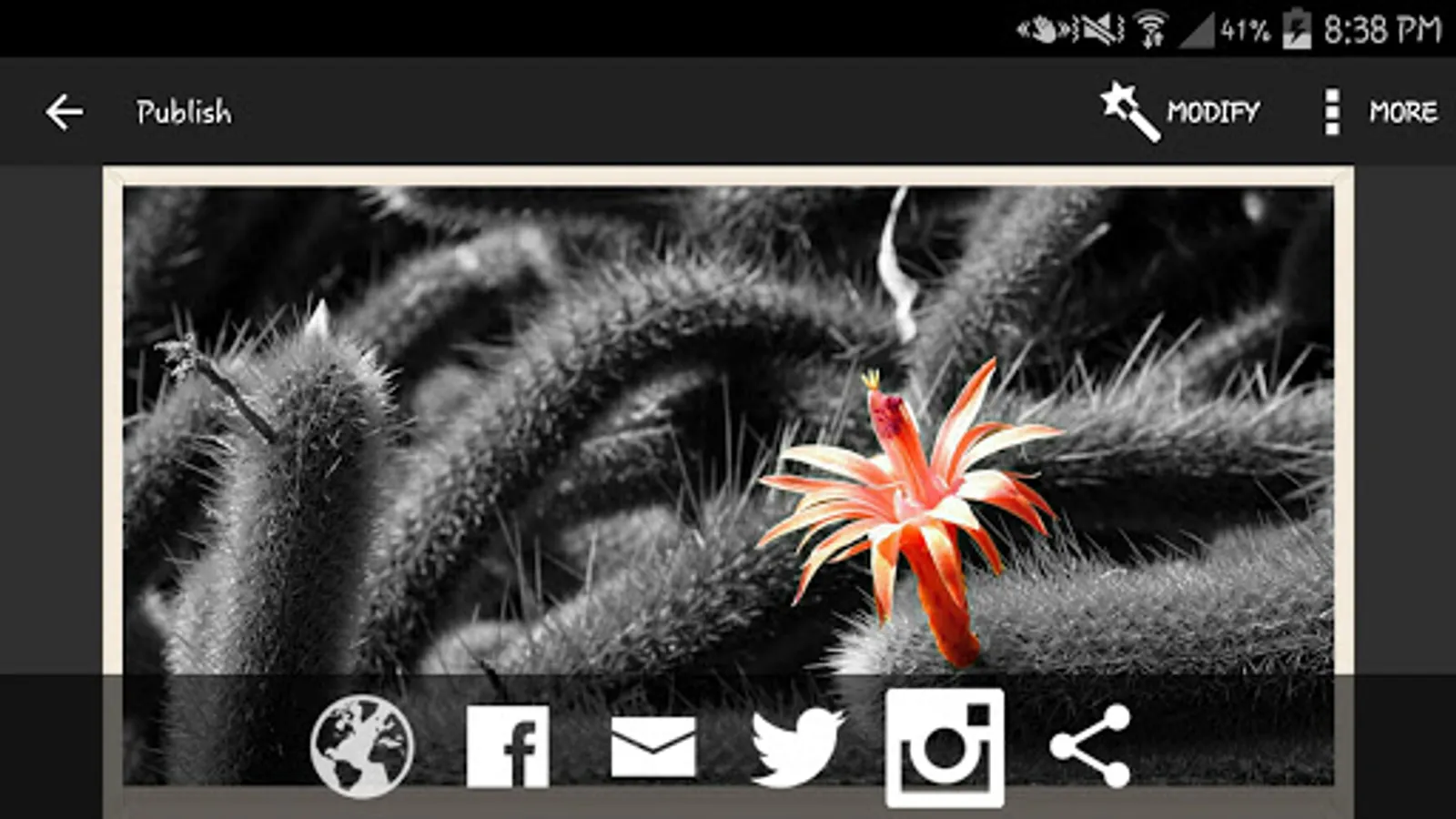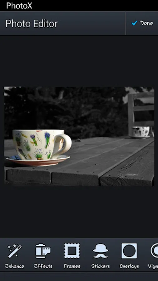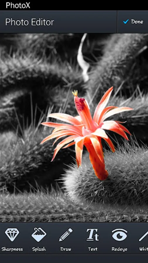 PhotoX specialize in Photo Accent Editing where you separate your background from the subject. PhotoX supports black and white background, sepia and more background effects.