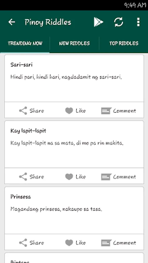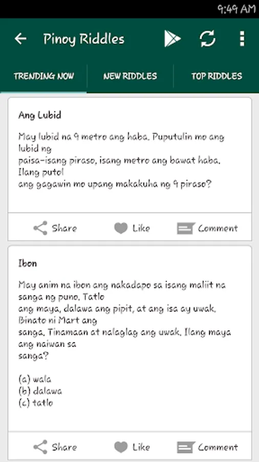 One may always notice that riddles made by Filipinos are always based on materials or equipment that are habitually seen or used. Let's try if you can answer some of the riddles.