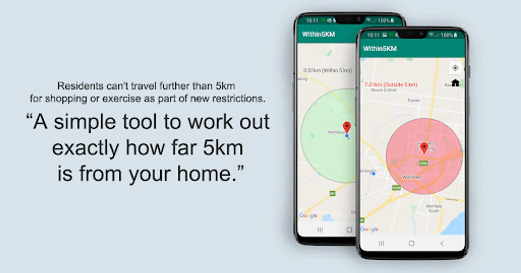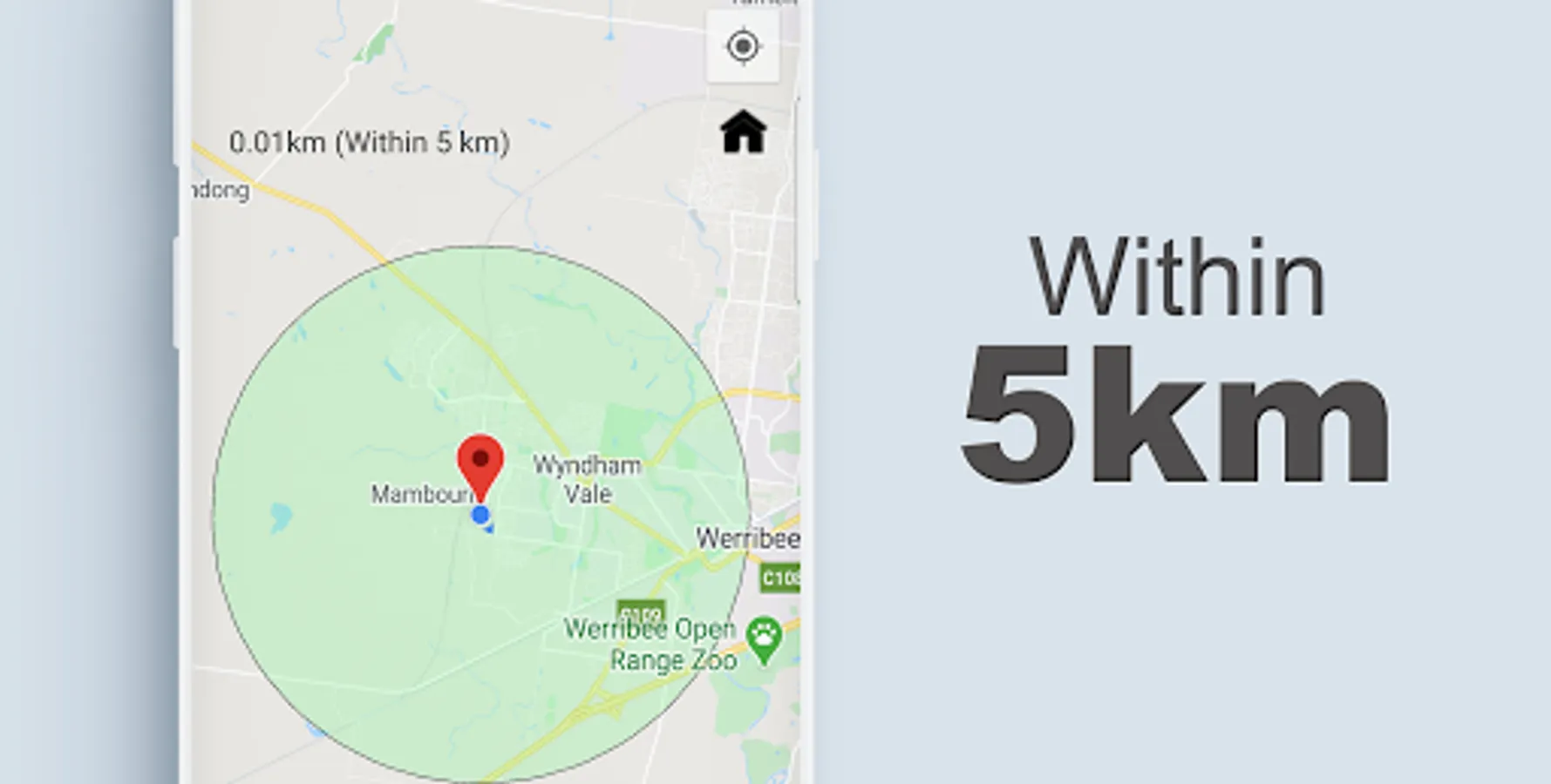 Within5KM app is so easy to use, all you need to do is type your address and the app will show you how far is 5km in all directions.