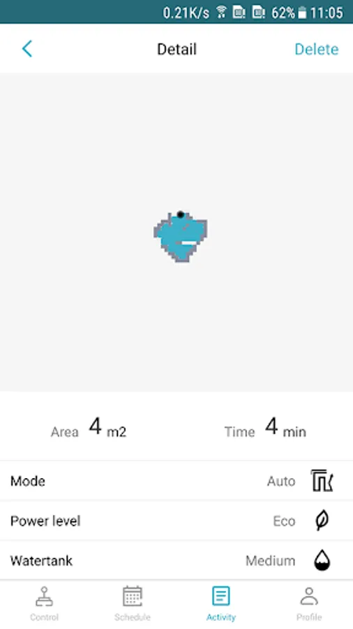 - Device positioning; you can view the robot's cleaning area and cleaning time information.