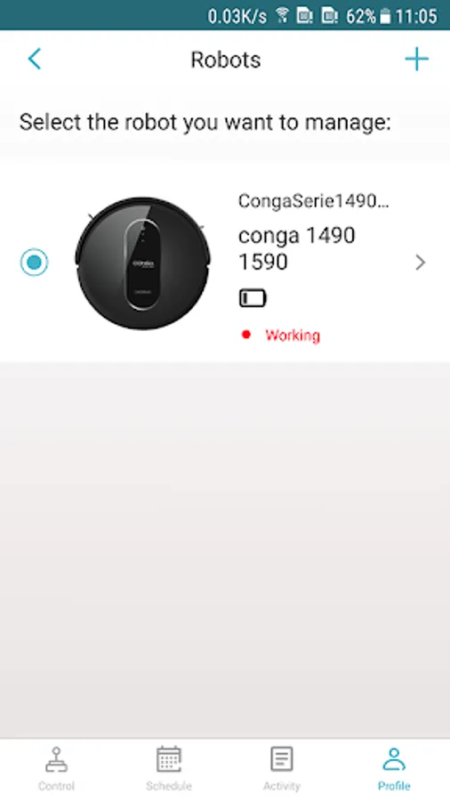 CONGA 1490 1590 is a smartphone application that connects to the robot vacuum cleaner.