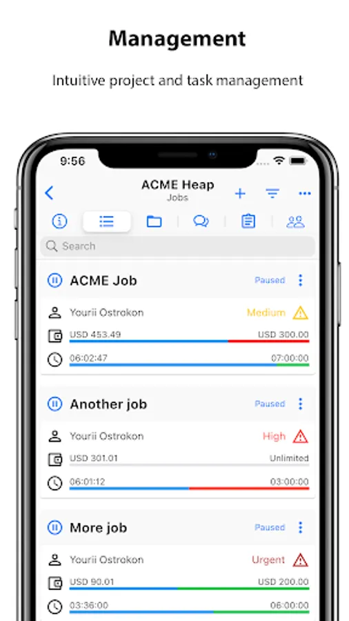 Import address book for easier communication with your team, invite people and set their specific level of information access.