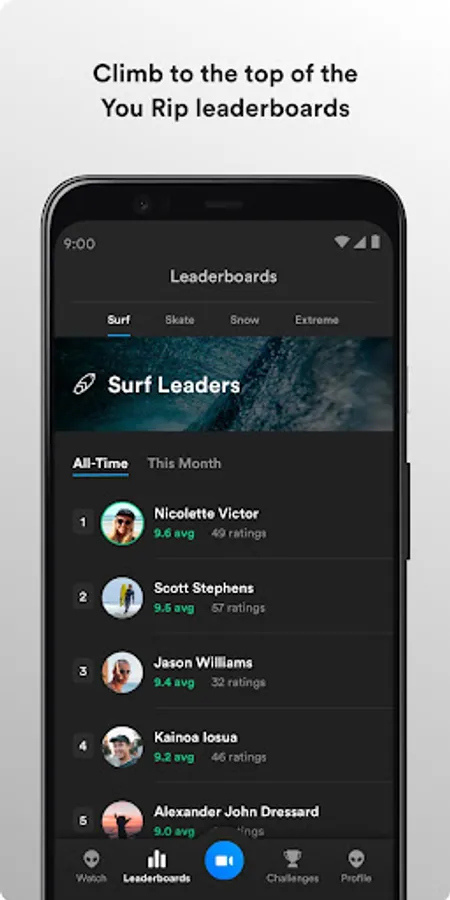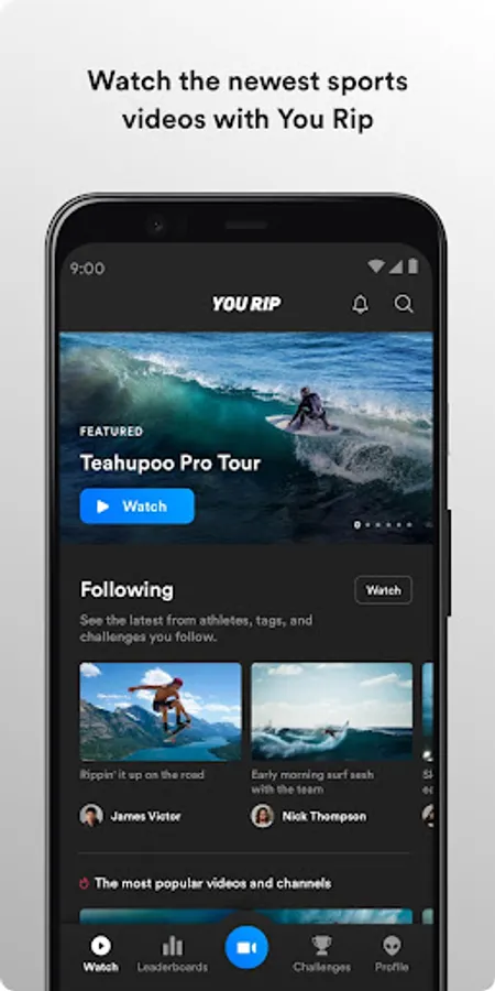 • Climb to the top of the You Rip leaderboards by sport, location, or channel.