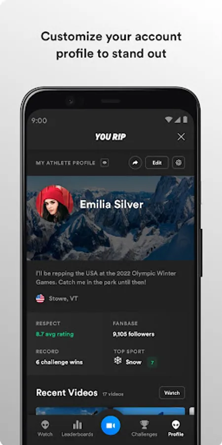 • Customize your profile with videos, images, and challenge victories to stand out to fans.